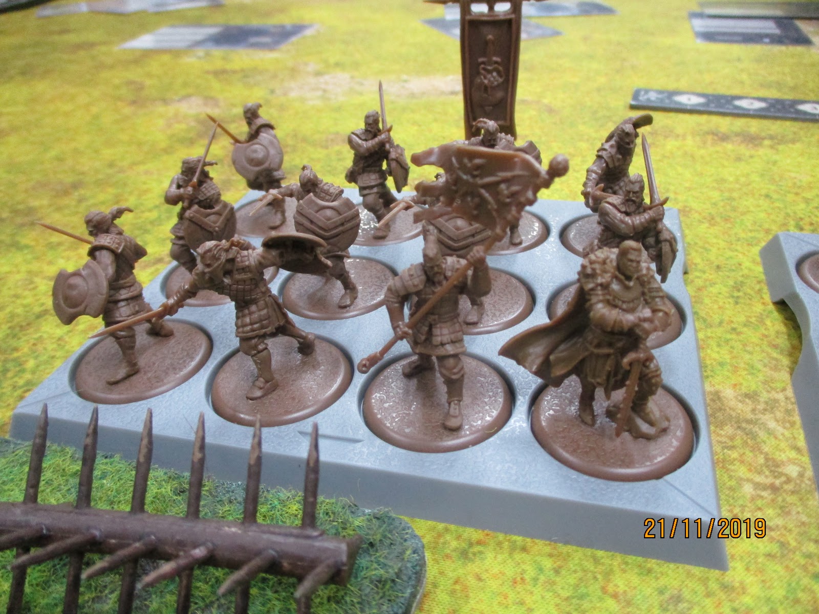Raymond followed up with his first activation and revealed The Long War Attackers card, forcing all my units when activated to pass a morlae check or become panicked. I went on to fail one, I think...