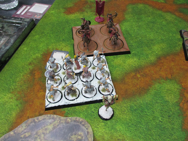 Undeterred, Stephen played Ride by Attack through the Spearwives, killing 4. Engaging with the Raiders would not have been much use given that Ride by Attack can be used when engaged. The Cave Dwellers flanked, using overwhelming assault to help...
