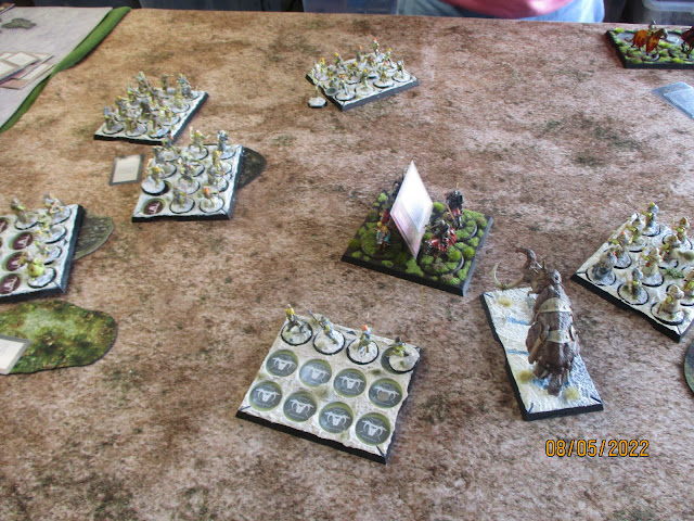All about the moving in first turn, with special note to my use of Predictable Manouvers on the right side cavalry. had they been activated, I would have been able to charge the Spearwives into the central cavalry, so they stayed put.