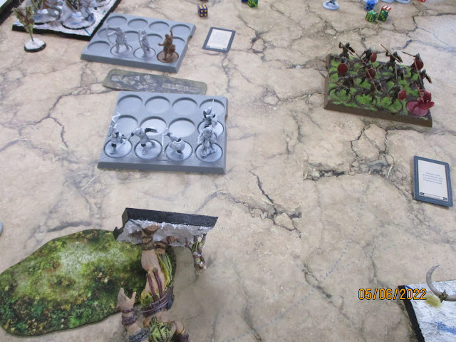 Having activated the spearwives to seize the right objective, we mutually played out but I still had Harma and also the Bears to activate. So with a quick swift reposition on Harma's Spearwives, then actviating for a spear toss with a 2" shift...