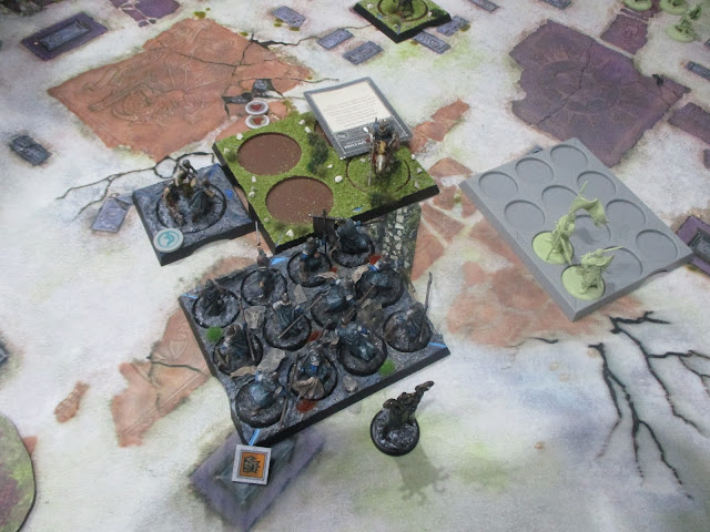 The Cavaliers activated and did 2 wounds on the Drowned Men, but I had a Wendamyr token so healed them. before shaggydog attacked doing 2 more. My drowned Mens stick that did hit bounced off the cavalier armour. Steve moved the Berserkers onto the objective.
