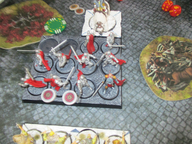 The Baratheon Wardens in the centre flanked my Spearwives, dropping them by six models. However, I used regroup and reform to bolster them adding the Raid Leader to them too.