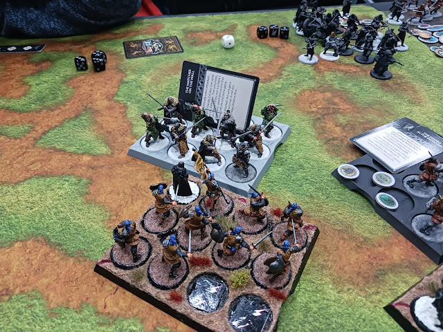 Well, at least the Watch came out on top!!! Great to paly Dom again but felt bad as bad dice certainly was a major factor in this game. Chatting afterwards we both agreed Dom had been to aggressive with the Crossbowmen, pushing them up like that turn 1 as the Ready Aim Fire is not a real deterrent against a force with the healing ability I had in the conscripts and Aemon. Targeting the Conscripts with Othell from the go would also have helped. Getting his Sworn Brothers stuck at rear was less than ideal too. But neither of these determined the outcome. Getting Daario three attack actions with Veterans (and vicious) in Turn 2 really turned the game as, again given my healing, Set For Charge didn't deter an assault. Even then, Dom really had some bad dice rolls in the first 3 turns!!! But good to face a fluffier list to face at the Wardens. It was only when I was setting up that I realised just how bad my morale was (given Othell) and hence why Dom placed two corpse piles. Sure, my dice helped. Also never really thought about not being able to put cards on them. But a good end to the league for me...