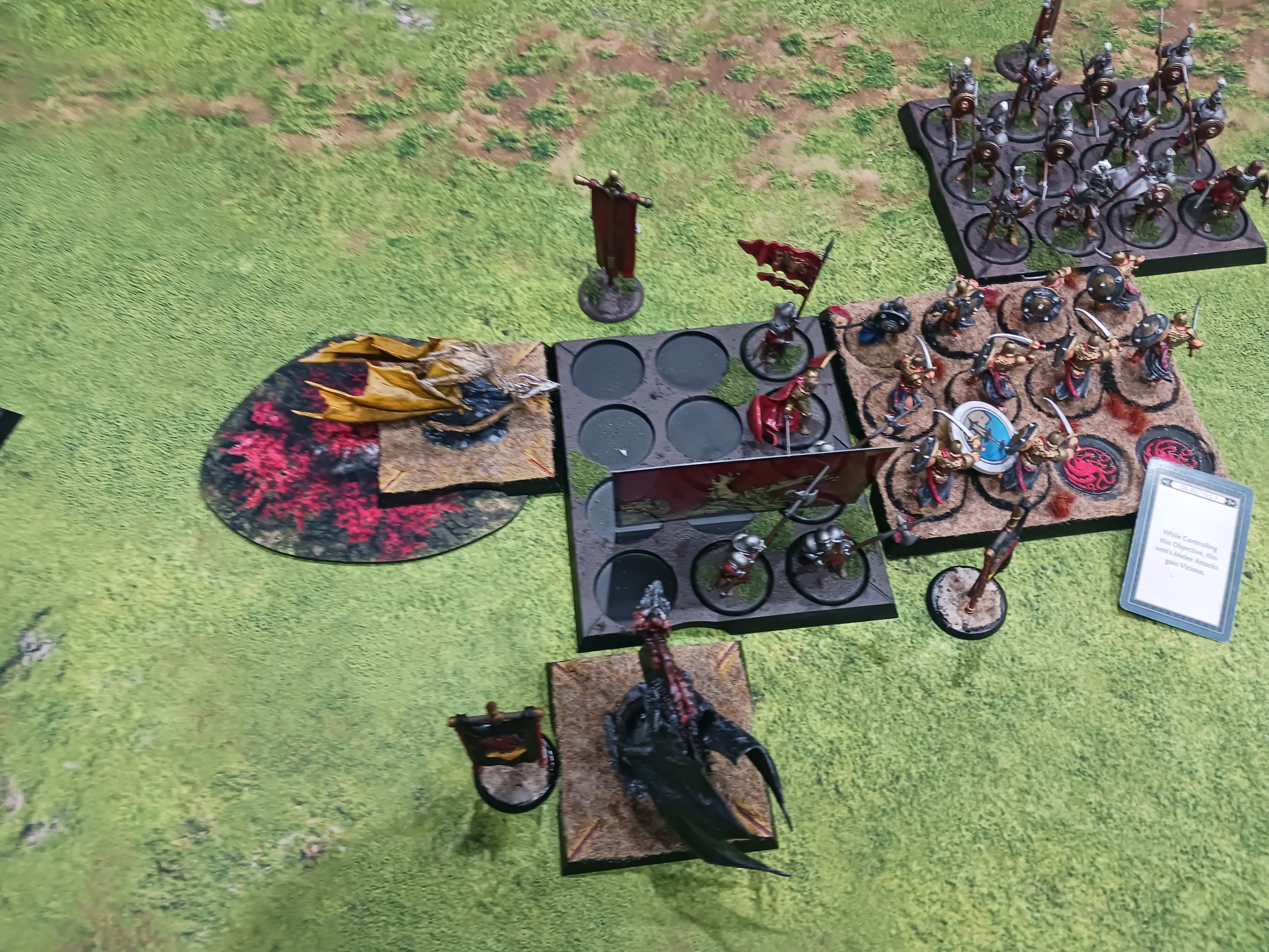 Aden didnt think a charge would work and he had Drogon behind, so he used the Horses to retreat away. I then took the Swords to use Devotees of the Dragon and brought on a unit of Freedmen
