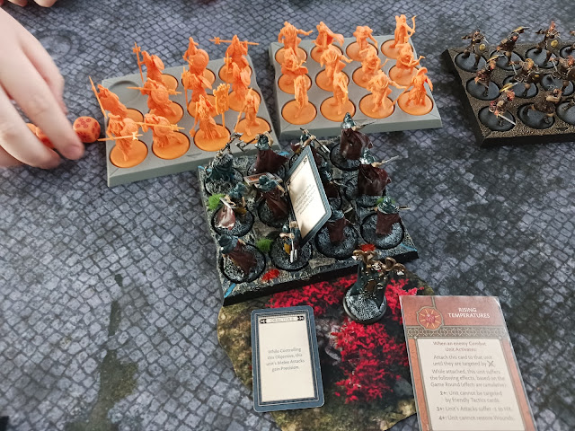 Nute's Reaver activated and charged home, despite the second Rising temperatures card being played on them... And even with re-rolls, 3 hits!!!