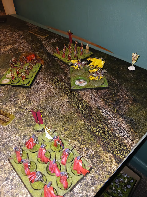 So, the Red Cloaks activated, shuffled a wee bit and I lost 3 Peasants to the panic check they induced. I marched everyone else up, feeling confident and a bit oblivious to the Dark side...