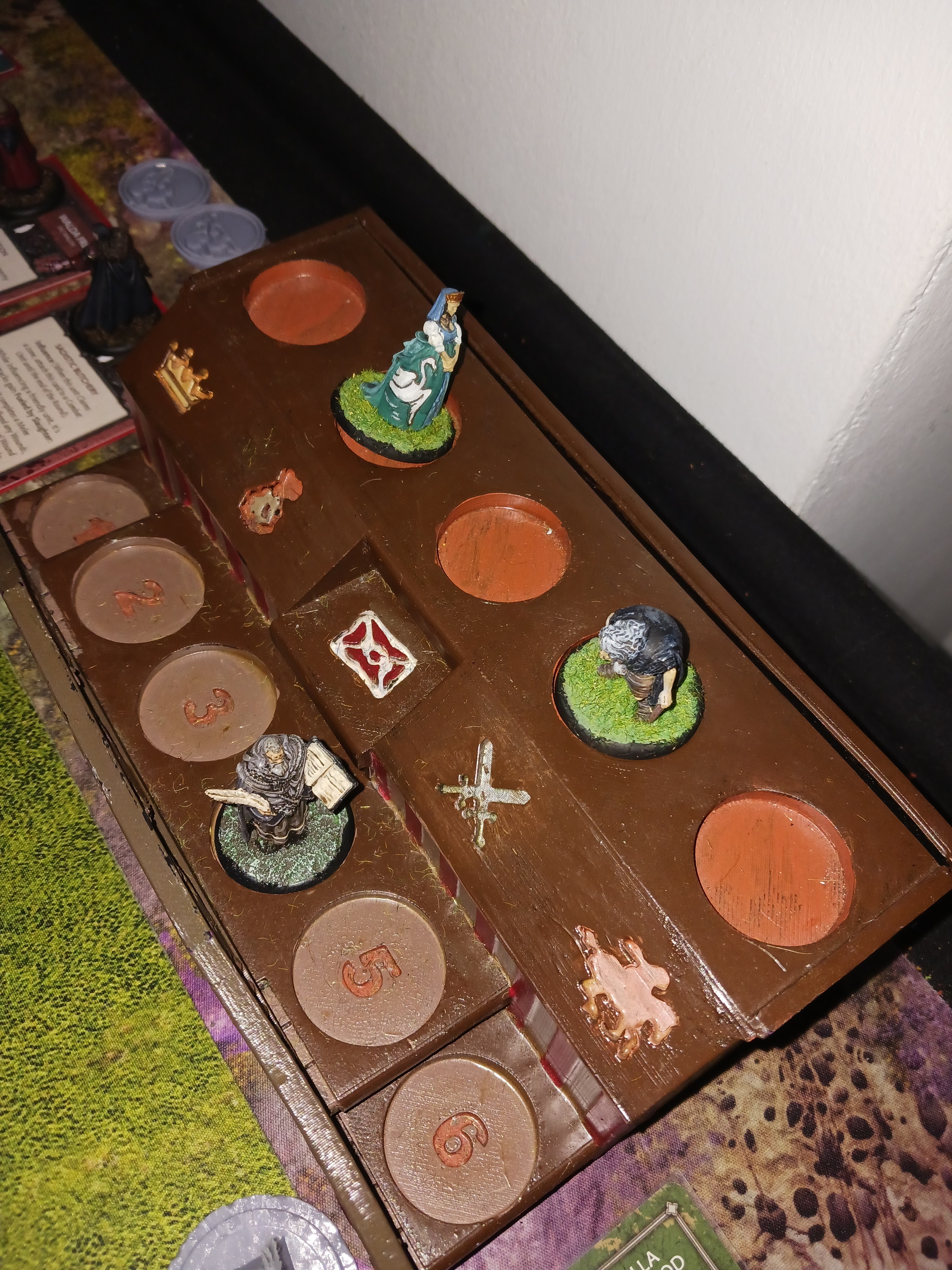 John took the bags, to heal up Drogo. I took the Horses, moving Gendry back. John used a Varys token to move Drogo up before he took the swords and shot into Gendry. I didn't use his order, as I was hoping he would die so I could take the objective from a corpse pile.