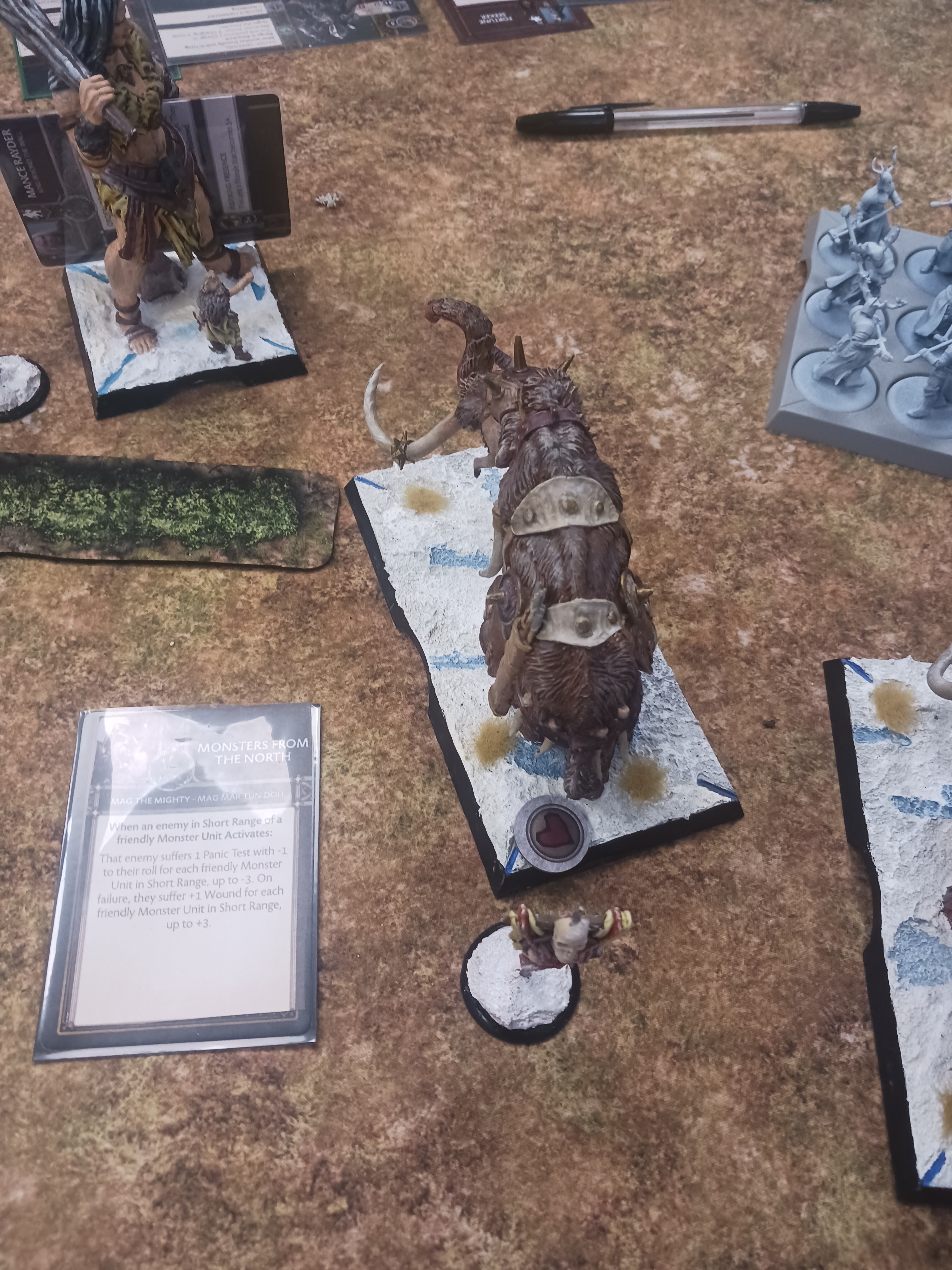 No doubt about it, Jake suffered with no NCU's. Even turning to face burned a units activation and with Horses and Val, I simply outmaneuvered the Monsters and won on objectives. Tormund did a great job in killing giants, aided by the Cave Dwellers but Mag didn't even get into combat and I sacrificed units and my mini-monsters to keep the Giants at bay. Jake was a pleasure to play against but my maneuvering just proved too much